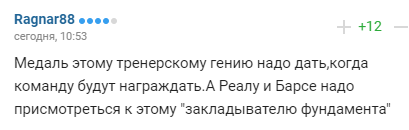 "Медаль цьому тренерському генію треба дати, коли команду нагороджуватимуть. А "Реалу" і "Барсі" треба придивитися до цього "закладача фундаменту".
