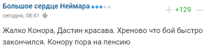 "Шкода Конора, Дастін красава. Хреново, що бій швидко закінчився. Конору пора на пенсію".