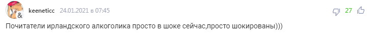 "Шанувальники ірландського алкоголіка просто в шоці зараз, просто шоковані)))"