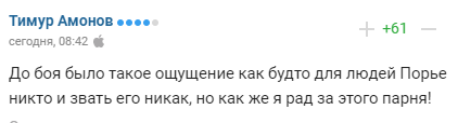 "До бою було таке відчуття, ніби для людей Пор'є ніхто і звати його ніяк, але як же я радий за цього хлопця!"