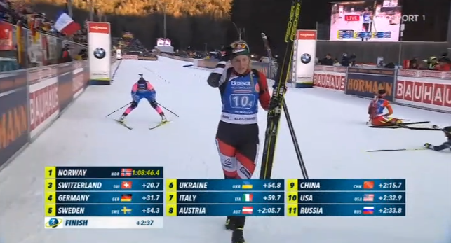 Перемогу святкували норвежки, другими до фінішу прийшли німкені, а третє місце у Швейцарії.