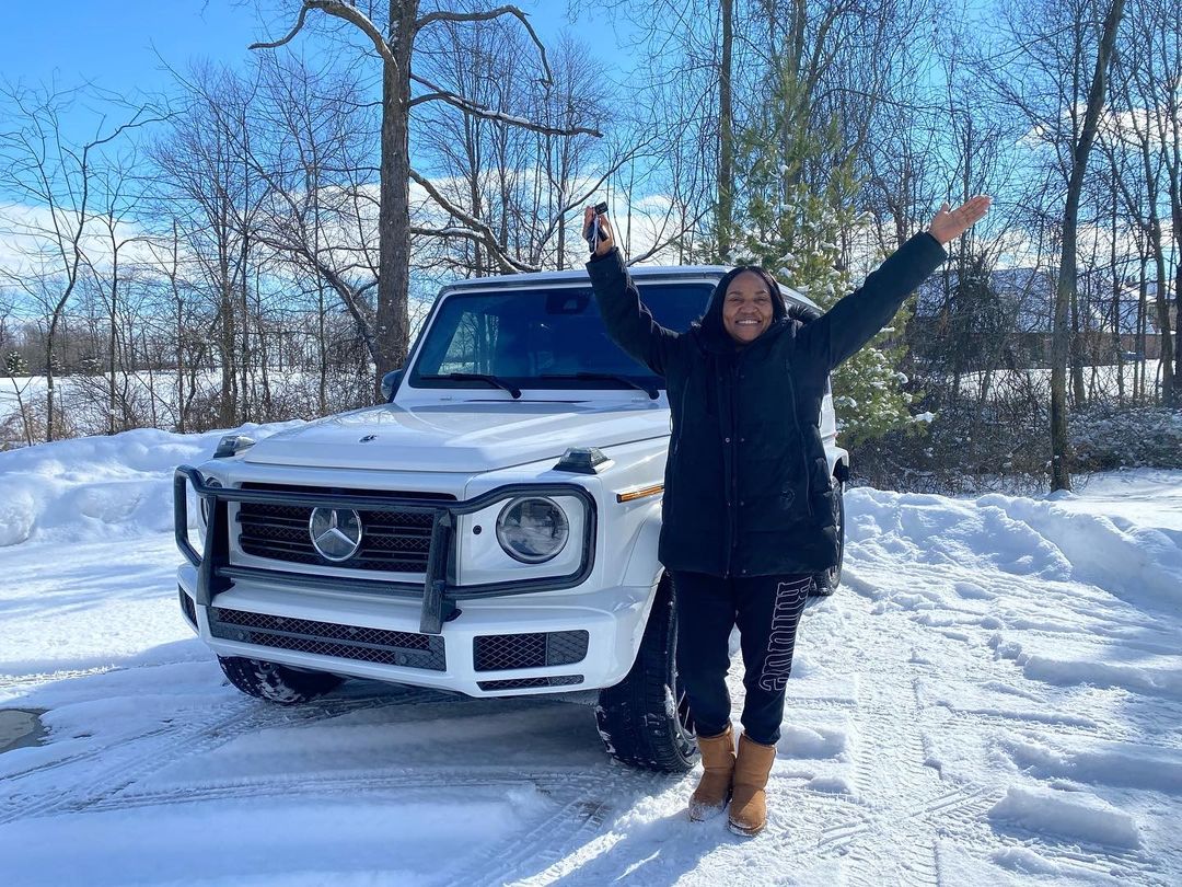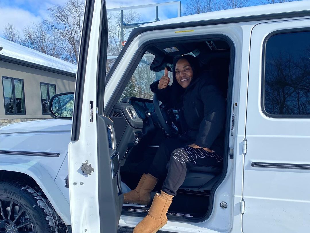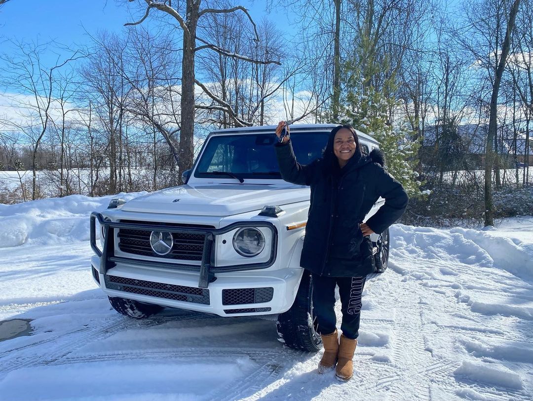 Глорія Джеймс опублікувала кілька знімків із Mercedes-Benz G-класу білого кольору. У коментарі до фото вона зазначила, що подарунок отримала від сина.
