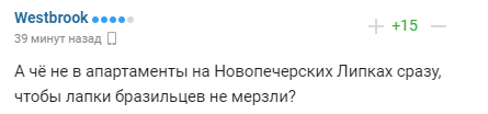 "А че не в апартаменти на Новопечерських Липках відразу, щоб лапки бразильців не мерзли?"