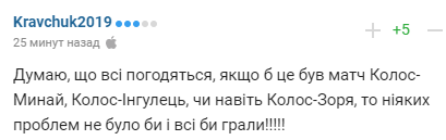 "Думаю, що всі погодяться, якби це був матч "Колос" - "Минай", "Колос" - "Інгулець", або навіть "Колос" - "Зоря", то ніяких проблем не було б і все б грали!"
