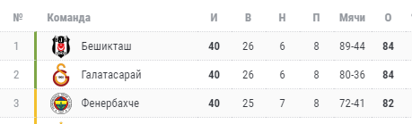 У підсумку "Бешикташ" і "Галатасарай" набрали по 84 очки, але "орли" стали чемпіонами завдяки кращій різниці м'ячів - 89-44 проти 80-36. Третє місце з 82 очками посів "Фенербахче". Таким чином, "Бешикташ" і "Галатасарай" зіграють в кваліфікації Ліги чемпіонів, а "Фенербахче" прийме участь в кваліфікаційному турнірі Ліги Європи.