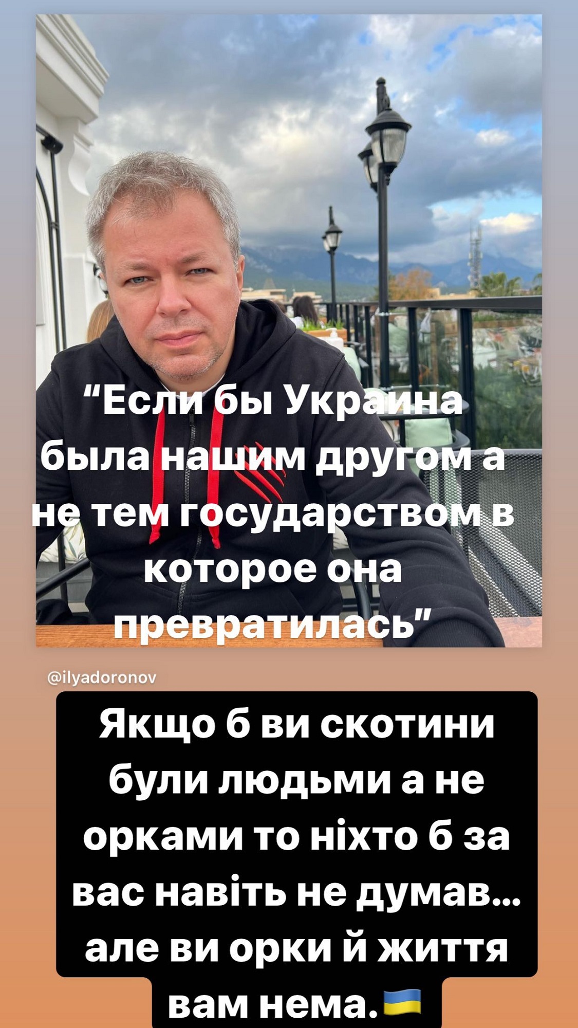 Стаховський опублікував фото Доронова та його цитату, в якій говорилося: "Якби Україна була нашим другом, а не тією державою, на яку вона перетворилася".
