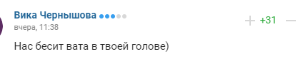 "А ми таких як ти, Саш, називаєм ватанами. І нам начхати на те, як ти до нас ставишся, мільйонер до "ніщєбродів")))"