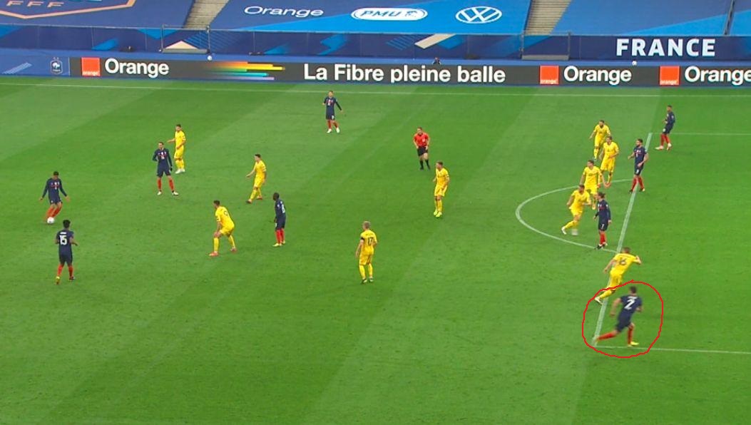 Гол у ворота збірної України на 19-й хвилині забив Антуан Грізманн, якому вдався чудовий обвідний удар. Але на початку гольовий атаки в офсайді після пасу з глибини виявився Бенжамен Павар. Положення "поза грою" не було зафіксовано, так як в матчах відбору ЧС-2022 не використовується система відеоассістента (VAR).