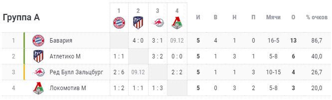 "Баварія" вже гарантувала собі вихід в плей-офф Ліги чемпіонів і перше місце в групі. У заключному турі мюнхенців чекає майже тренувальний матч на своєму полі з "Локомотивом". За друге місце поборються в особистому матчі "Атлетіко" і "Ред Булл Зальцбург".