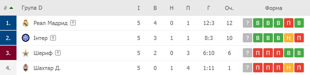 Донецький "Шахтар" програв міланському "Інтеру" та достроково вилетів із єврокубків, а тираспольський "Шериф", який очолює українець Юрій Вернидуб, був розгромлений мадридським "Реалом".