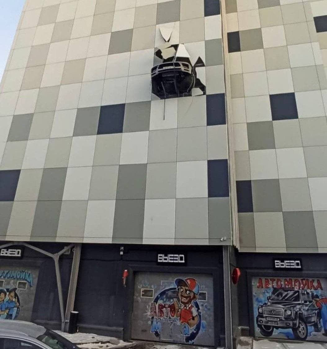 Російський хокеїст Денис Казіонов, перебуваючи за кермом свого автомобіля Porshe, пробив дах паркінгу в Москві, в результаті чого машина зависла в повітрі на висоті третього поверху.