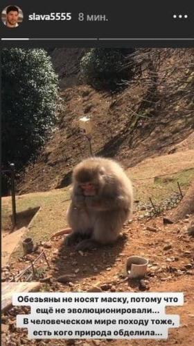 "Мавпи не носять маску, тому що ще не еволюціонували. В людському світі походу теж, є кого природа обділила", - написав Кравцов.