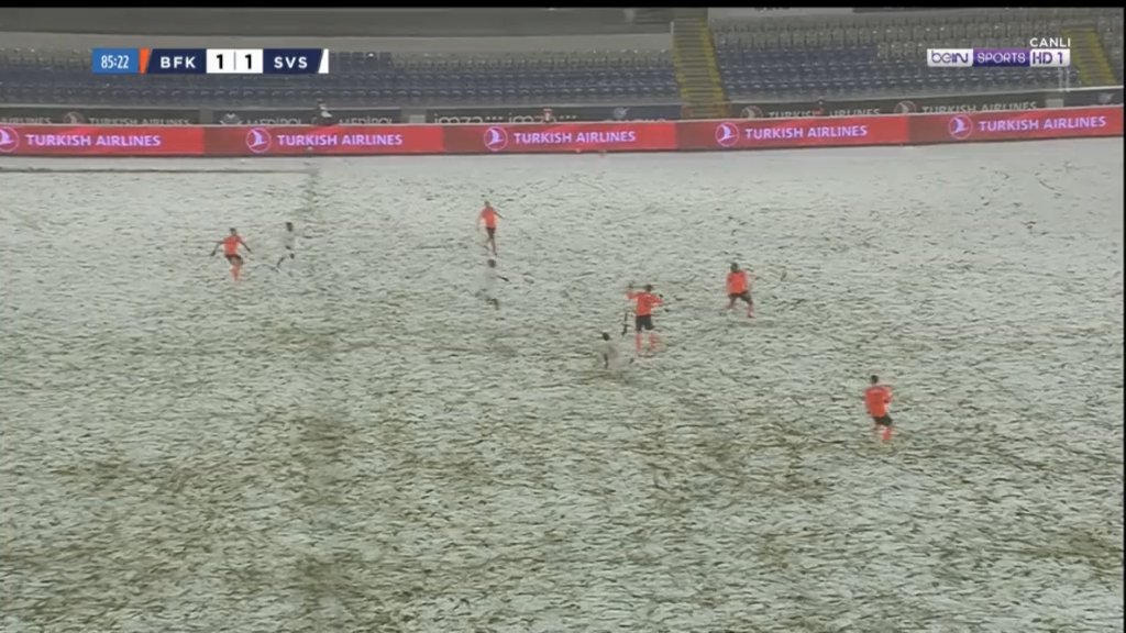 Футболісти "Сівасспору" раптово розчинилися на полі в матчі 19-го туру чемпіонату Туреччини з "Істанбул Башакшехір". Гравці вийшли на засніжене поле в білих футболках і стали практично не помітні на телевізійній картинці, злившись з навколишнім оточенням.