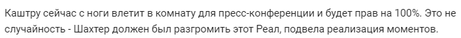 "Каштру зараз з ноги влетить в кімнату для прес-конференції і буде правий на 100%. Це не випадковість - Шахтар повинен був розгромити цей" Реал ", підвела реалізація моментів".