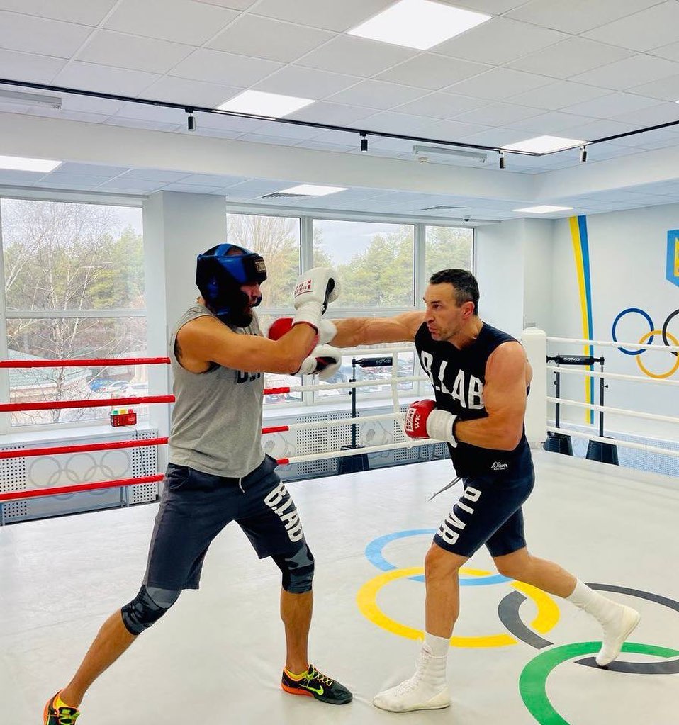 Так, ексчемпіон світу у надважкій вазі опублікував у Instagram кадр зі свого спарингу. На фото показано момент, як Володимир завдає удару правою у свого суперника, який у ринзі, на відміну від Кличка-молодшого, був у шоломі.