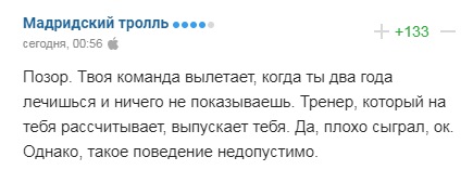 "Ганьба. Твоя команда вилітає, коли ти два роки лікуєшся і нічого не показуєш. Тренер, який на тебе розраховує, випускає тебе. Так, погано зіграв, ок. Однак, така поведінка неприпустима".