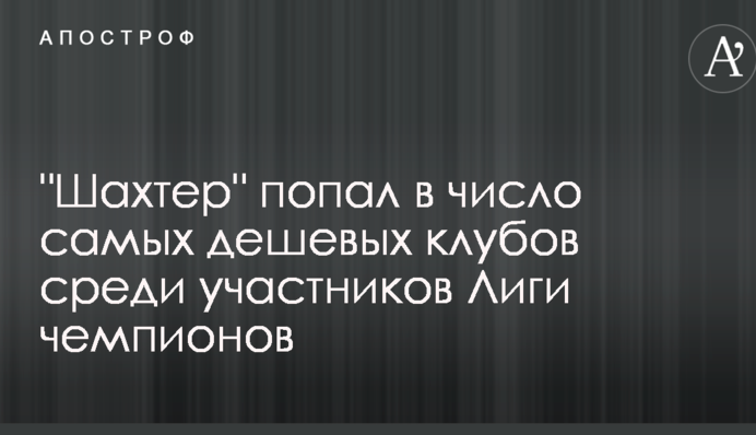 Донецький "Шахтар", який стартує в Лізі чемпіонів матчем з німецьким "Хоффенхаймом", займає лише 25 місце серед 32 учасників турніру за вартістю складу за версією авторитетного сайту Transfermarkt.de.