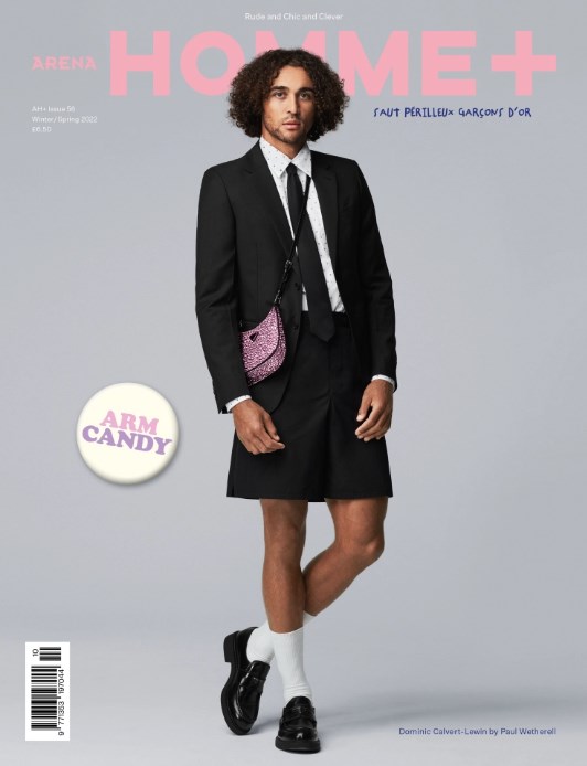 Форвард збірної Англії Домінік Кальверт-Льюїн шокував фанатів своєю появою на обкладинці журналу Homme Plus у вбранні школярки.
