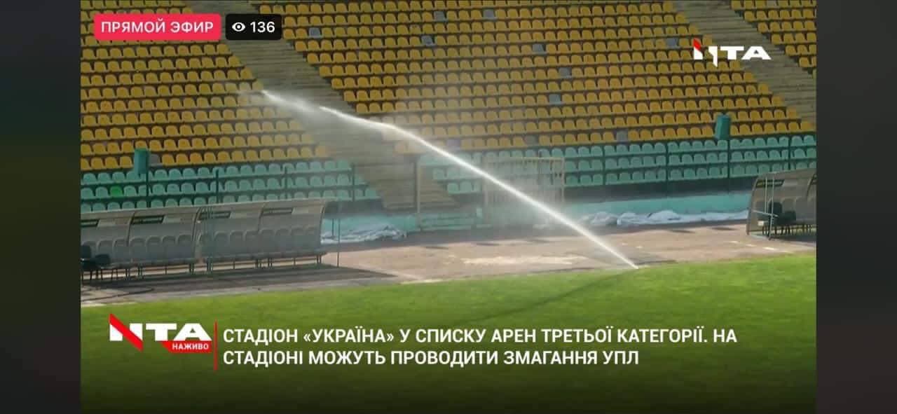 Тим часом на стадіоні "Україна" "убитий" газон, а поливалки б'ють на трибуни.