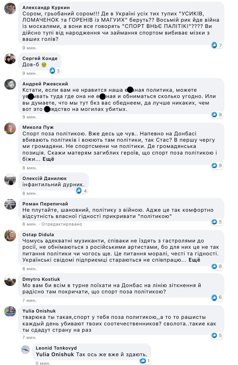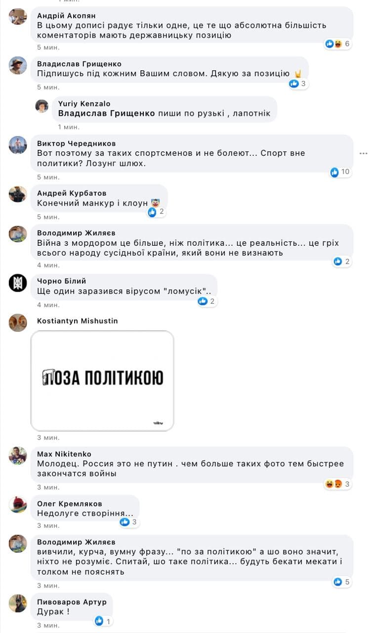 У коментарях до посту українці різко сприйняли захист Горуна і кинулися критикувати спортсмена за таку позицію.
