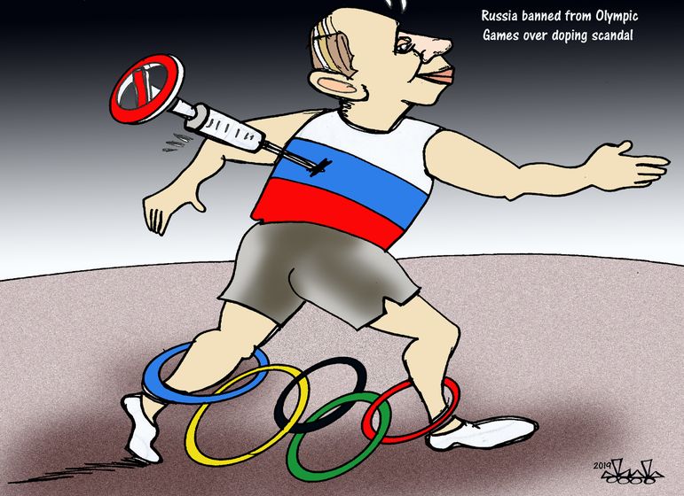 Користувачі мережі відреагували фотожабами і карикатурами на рішення виконавчого комітету ВАДА про відсторонення Росії від крупних спортивних турнірів терміном на чотири роки.