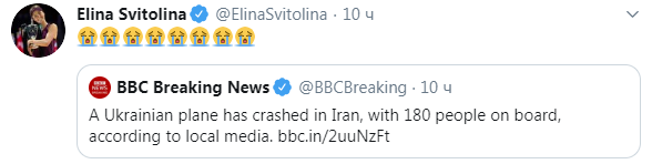 Відомі українські спортсмени з болем і співчуттям відреагували на звістку про жахливу авіакатастрофу, що сталася з літаком Boeing авіакомпанії МАУ, який летів до Києва з Тегерана (Іран).