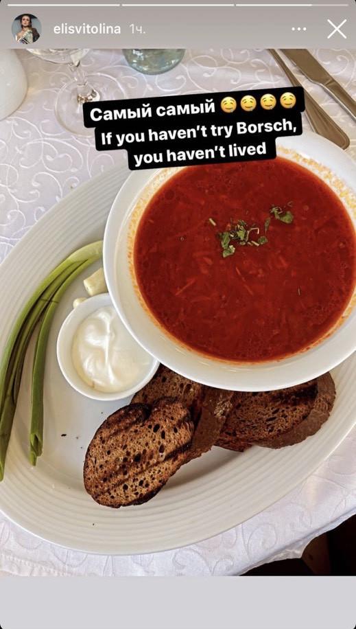 "Якщо ти не пробував борщ, то ніколи не жив", - написала Світоліна.