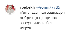 "П'яна їзда - це зашквар, і добре, що завершилося без жертв", - додав Бебех.