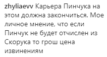 "Кар'єра Пінчука на цьому повинна закінчитися. Моя особиста думка, що якщо Пінчук НЕ буде відрахований з" Скорук ", то гріш ціна вибачень"