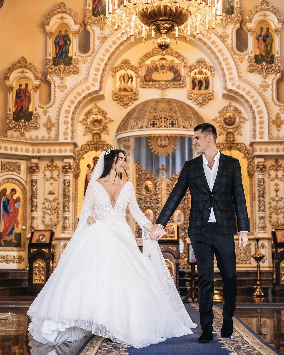 Форвард київського "Динамо" Артем Бєсєдін повінчався зі своєю дружиною Радмілою Карафетовою.