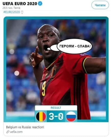 Хтось помітив, що збірна Бельгії виступає в формі в кольорах, схожих на прапор ОУН. Інші охрестили бельгійських футболістів "запеклими русофобами" і подякували їм за розгром збірної Росії.