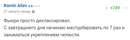"Ф'юрі просто декласував. З завтрашнього дня починаю мастурбувати по 7 разів і займатися зміцненням щелепи".