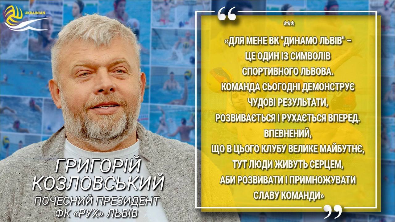 Григорій Козловський, почесний президент ФК "Рух" Львів, наголосив на шляху, пройденому "Динамо" за 75 років, та висловив віру в його майбутнє.