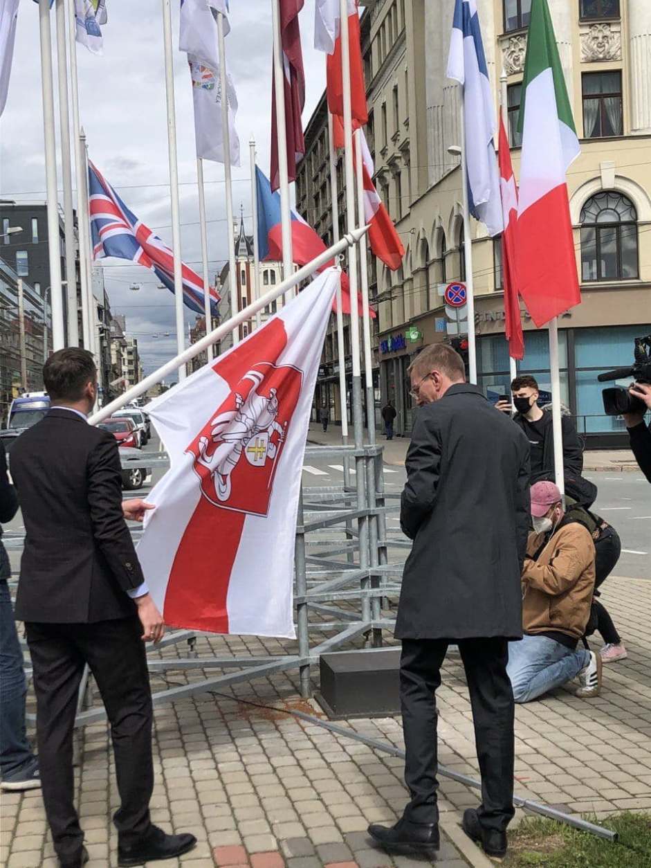 Мер Риги Мартіньш Стакіс і міністр закордонних справ Латвії Едгар Рінкевич замінили державний прапор Білорусі на біло-червоно-білий, який в Мінську мають намір заборонити. В даний час в Ризі проходить чемпіонат світу з хокею і Білорусь є одним з учасників.