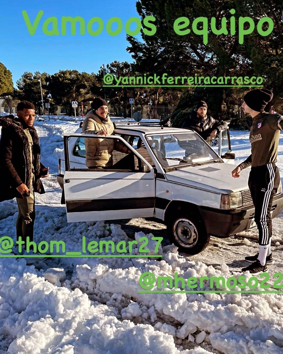 Футболісти "Атлетіко" з Мадриду змушені були відмовитися від пересування по місту на спортивних автомобільних через сильний снігопад, викликаний штормом "Філомена". Гравцям довелося добиратися на тренування на Fiat Panda, який півзахисник Яннік Феррейра Карраско позичив у сусіда.