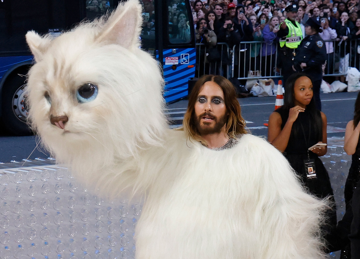 Музикант вирішив віддати шану знаменитій кішці бірманської породи і з'явився на килимовій доріжці Метрополітен-музею в реалістичному костюмі білого кота. Джаред Лето не одразу розкрив свою особистість, якийсь час актор спілкувався з гостями анонімно. Потім він зняв величезну голову і позував з нею в руках.