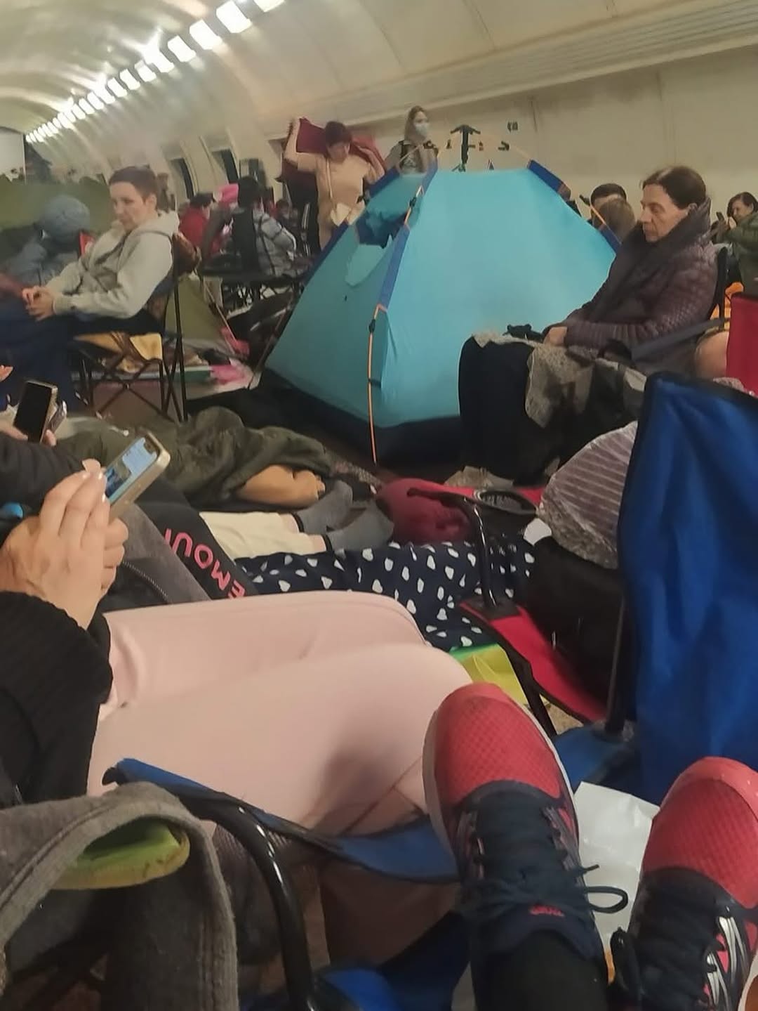 Ховаючись від агресії ворога, люди шукають спокій у метро, приходять туди ночувати з матрацами, стільцями, карематами та палатками.