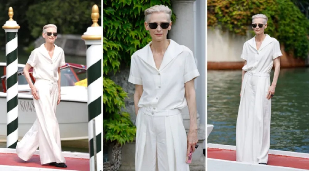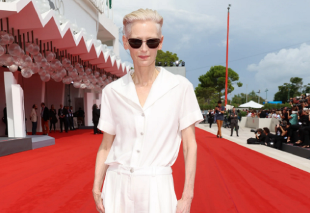 Британська акторка Тільда Свінтон, яка стала обличчям бренду окулярів Gentle Monster, продемонструвала яскравий образ на Венеційському кінофестивалі. 64-річна знаменитість була вся в білому.