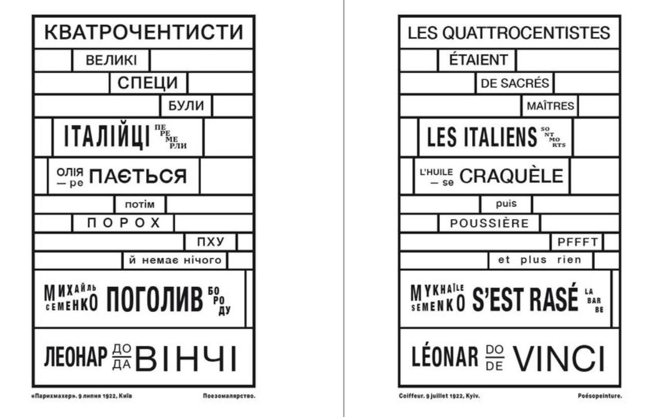 Окрім віршів, у книжці будуть представлені зразки "поезомалярства"(поєднання текстової й графічної форми твору в одне естетичне ціле, наприклад, з використанням живопису, декоративно-прикладного мистецтва, математичних знаків тощо) українського футуриста.
