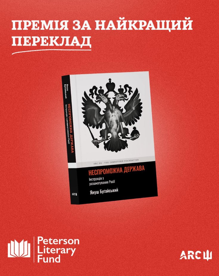 Український переклад книги англійського політолога Януша Буґайського "Неспроможна держава. Інструкція з розшматування Росії" отримав премію канадського Літературного фонду імені Пітерсона 2025.