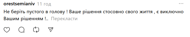 Підписники підтримали зірку у коментарях, зазначивши, що суспільний тиск щодо народження дітей є некоректним і має радянський шлейф. Фанати порадили артистці не звертати уваги на подібні коментарі.