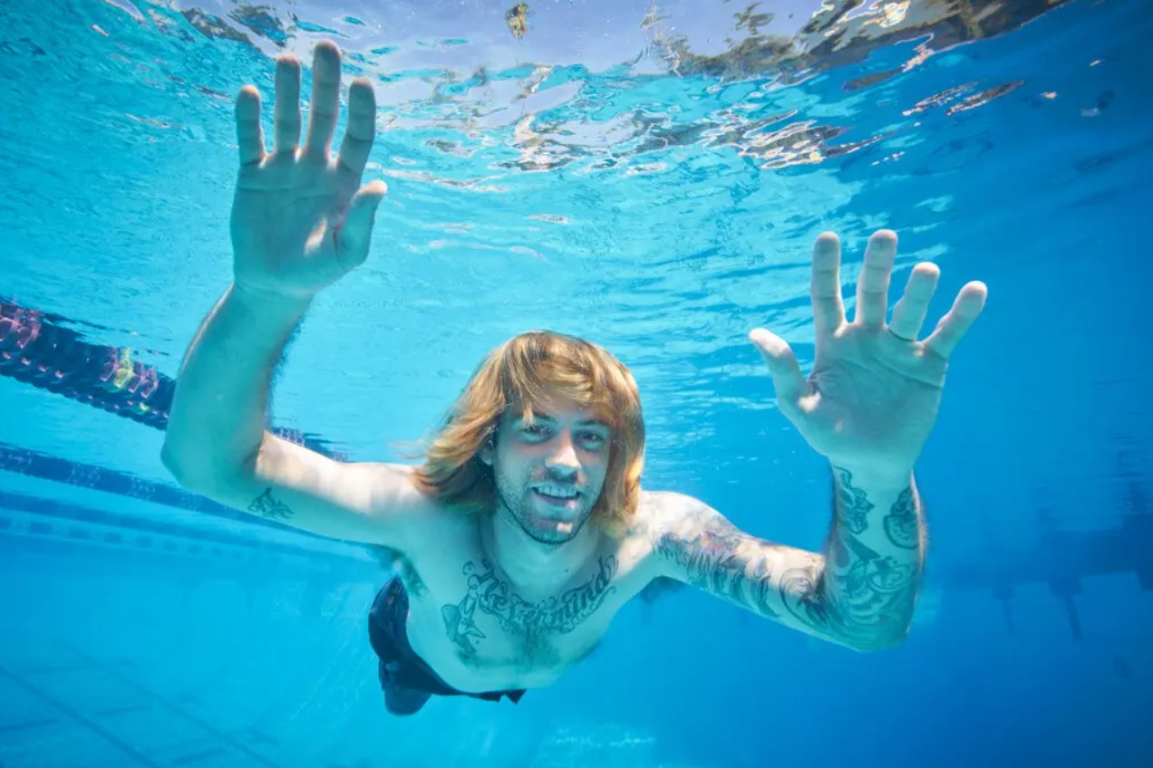 На знаменитій обкладинці платівки 1991 року зображено чотиримісячного Спенсера Елдена, який пливе під водою голим.