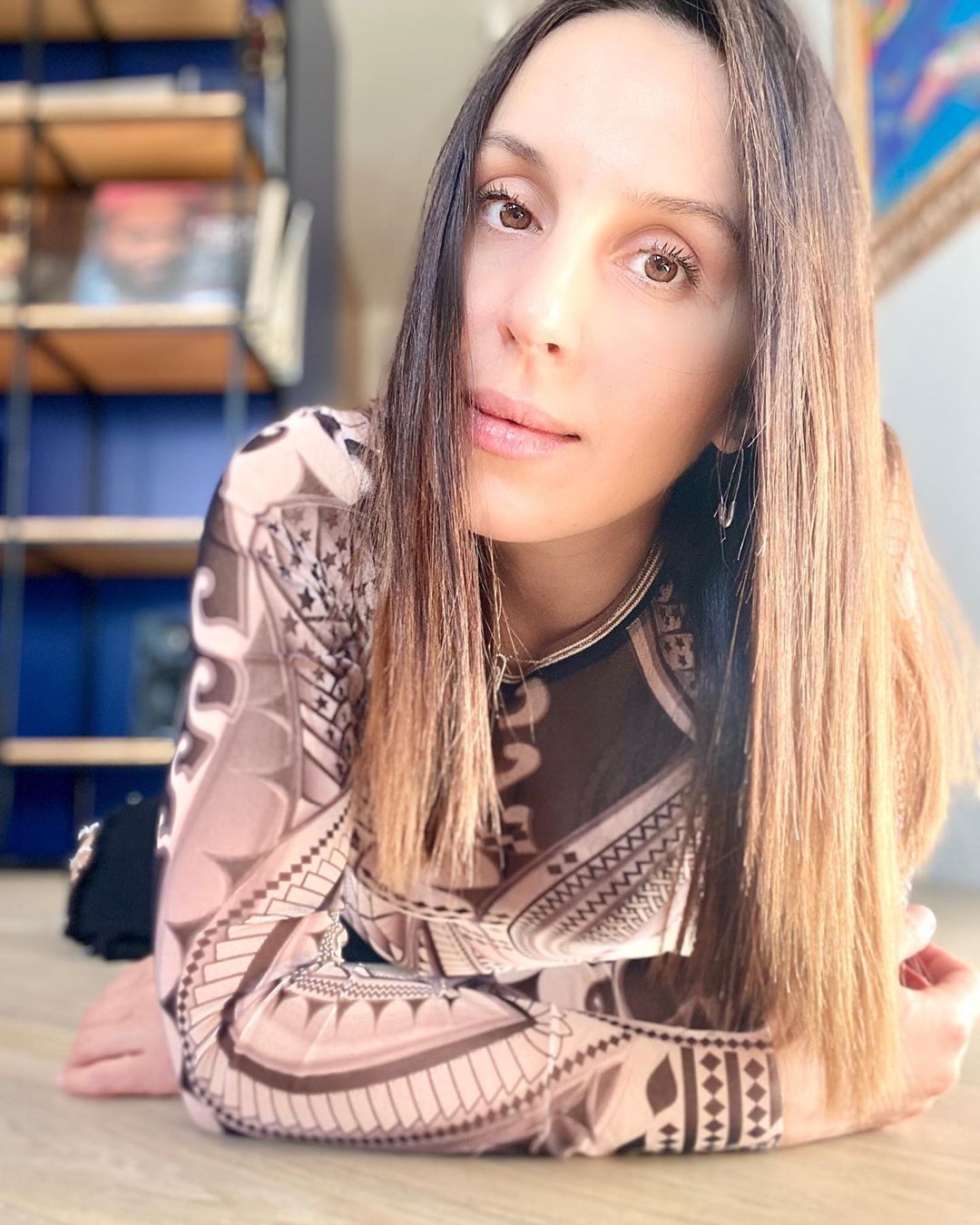 "На останніх місяцях вагітності у мене дві складності: сон (ніяк не можеш комфортно влягтися) і сухість шкіри! Ти розтягуєшся як куля і думаєш, більше нікуди, - написала вона. - Коли ти постійно вдома, шкіра сохне якось особливо швидко" .