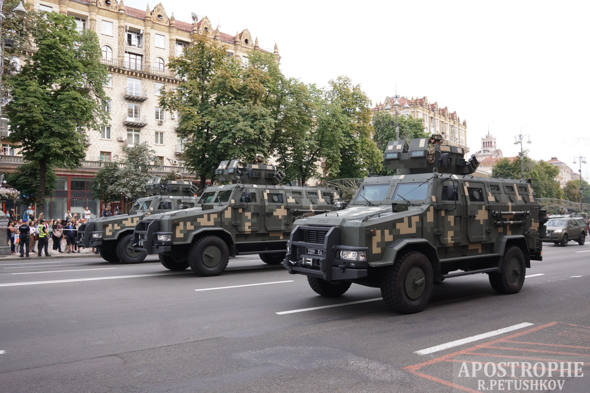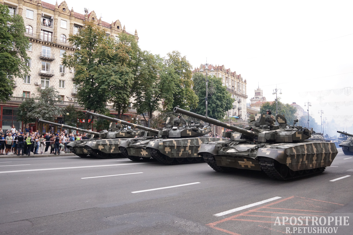 У центрі Києва пройшла репетиція військового параду до Дня Незалежності України. За кількістю техніки вже зараз можна сказати, що парад 24 серпня стане грандіозною подією. В рамках репетиції Києвом проїхала небачена раніше кількість військової техніки, а над головними вулицями столиці пролетіла військова і транспортна авіація, в тому числі і легендарний АН-255, "Мрія". Наш фотокореспондент був на місці подій і бачив сотні солдатів і новітні зразки озброєння, які готуються до святкового заходу.