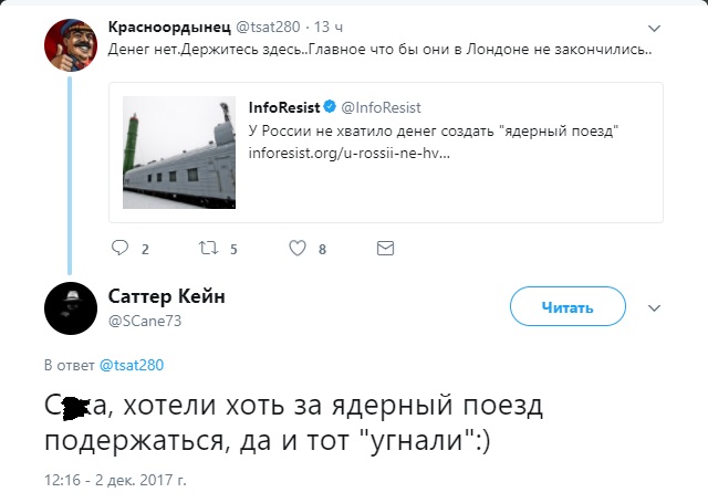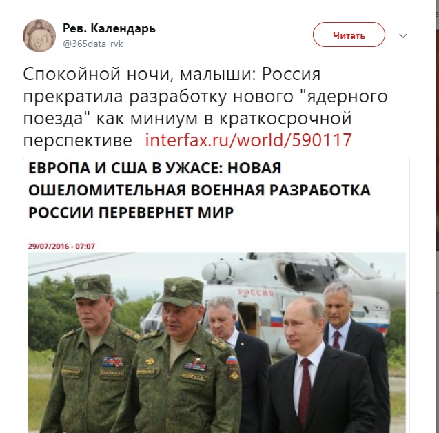2 грудня з'явилася інформація про припинення розробки бойових залізничних ракетних комплексів в Росії, що розсмішило соцмережі.