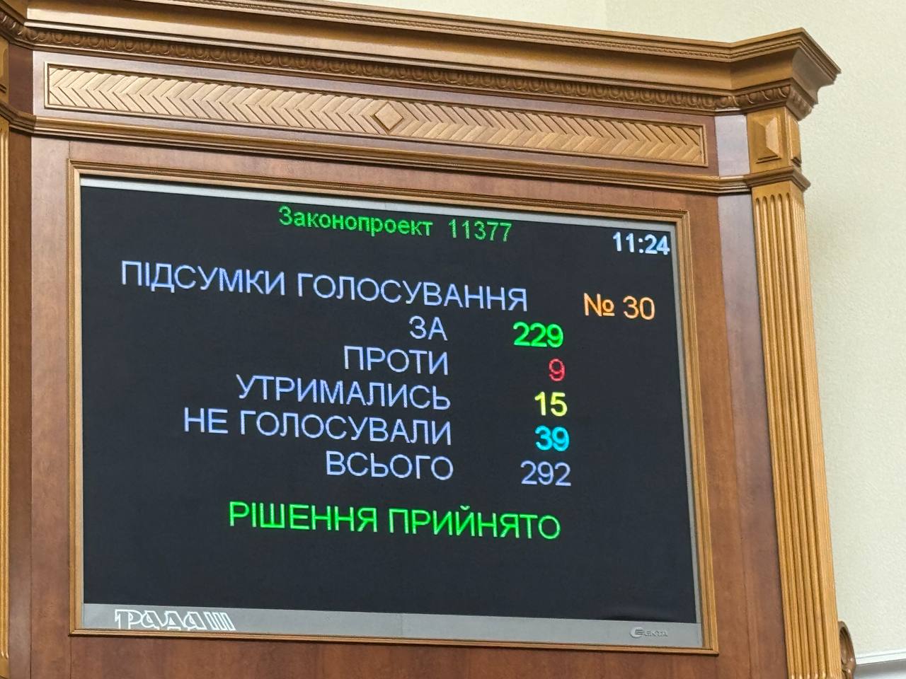 За ухвалення проєкту проголосували 229 народних депутатів, з них 160 – від фракції "Слуга народу".