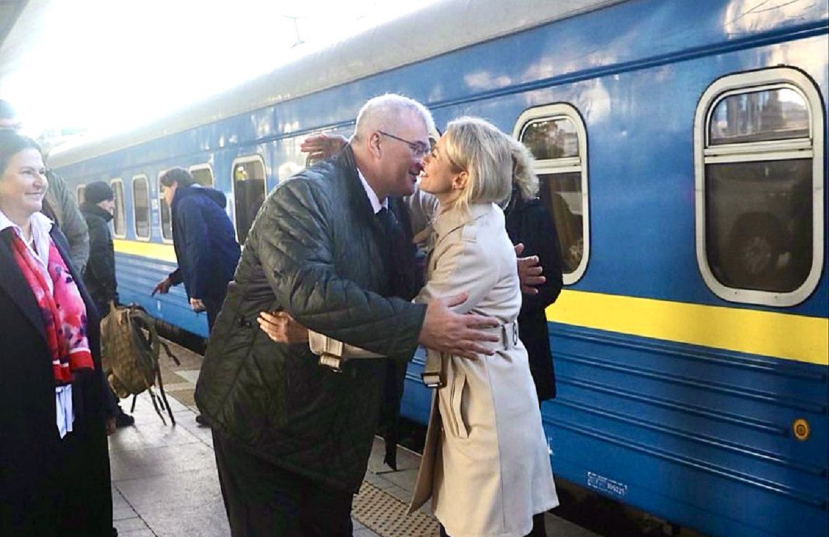 Міністр закордонних справ України Андрій Сибіга зустрів Каллас на вокзалі після її прибуття потягом до столиці України.