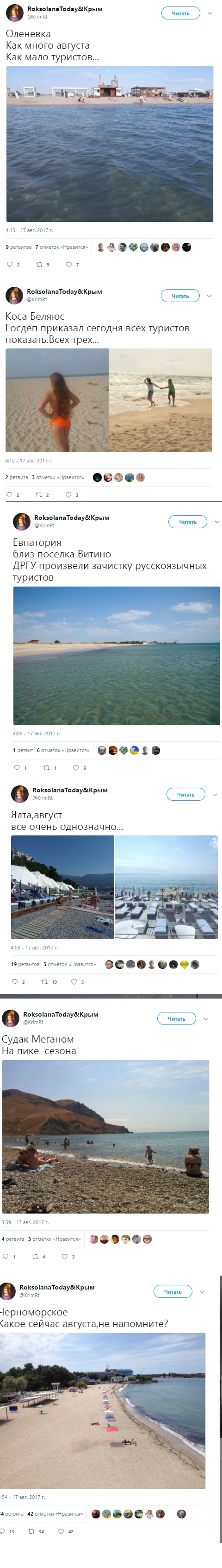 "Як багато серпня. Як мало туристів...", "ДРГУ зробили зачистку російськомовних туристів", - іронізує автор публікації, акцентуючи увагу на порожніх пляжах курортів.