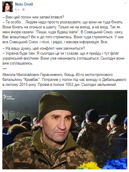 "Скоріше б все закінчилось. Пам’ятаємо про тих, хто ще не повернувся і прикладаємо максимум зусиль для повернення їх додому. А загиблим вічна память.Слава героям", "Скільки зі зниклих безвісти вивезені рабами в Чечню дізнатися взагалі неможливо", "На жаль велика частина зниклих без вести, швидше за все вже не з нами, а заручників в Луганда повно, сам трохи таким не став, врятувала випадковість "," Добре, що наших повернули, правда не всіх ", - відзначають блогери