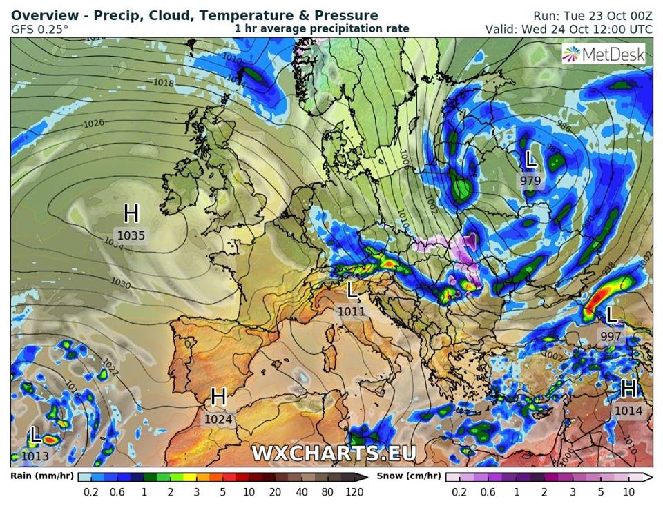 Атмосферний фронт з північного заходу Європи вже накрив Україну. Сьогодні, 23 жовтня, хмарно, також з дощами в західних і північних областях.